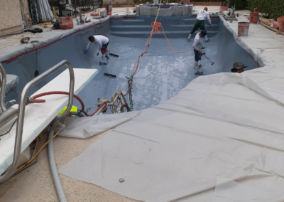 Se aplican los revestimientos interiores, como azulejos o pintura especial, para darle el acabado deseado a la alberca.
