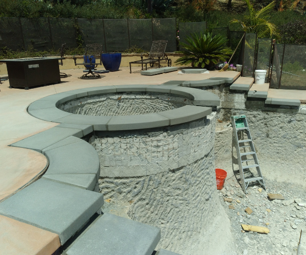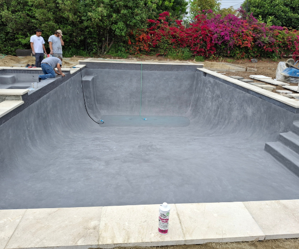 Se aplica una mezcla de concreto a alta presión sobre la estructura de acero, dando forma y solidez a la alberca.